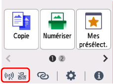(Réseau (Network)) varie en fonction de l'état de la connexion réseau de l'imprimante.