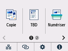 (Réseau (Network)) varie en fonction de l'état de la connexion réseau de l'imprimante.