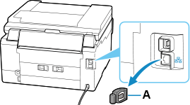 Rimuovere il coperchietto (A) dalla porta posta a sinistra sul retro della stampante.
