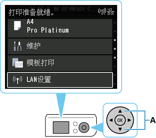 按钮(A)选择LAN设置,然后按OK按钮。