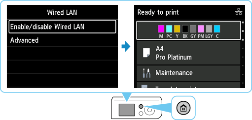 Välj Aktiv./inaktiv. kablat LAN (Enable/disable Wired LAN) och tryck på OK.