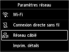 Sélectionnez Réseau câblé, puis appuyez sur le bouton OK.