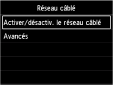 Sélectionnez Activer/désactiv. le réseau câblé, puis appuyez sur le bouton OK.