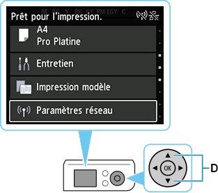 Sélectionnez Paramètres réseau à l'aide des boutons (D)