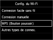 Sélectionnez WPS (Bouton poussoir) et appuyez sur le bouton OK.
