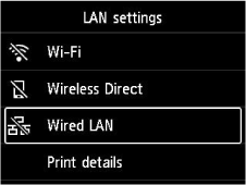 Selecione LAN com fio (Wired LAN) e pressione o botão OK.