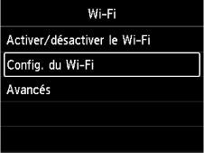 Sélectionnez Config. du Wi-Fi, puis appuyez sur le bouton OK.