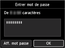4. Vérifiez que le mot de passe est correct, puis appuyez sur le bouton OK.