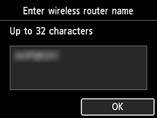Controleer of de netwerknaam (SSID) juist is en druk op OK.