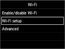 5. Selecione Configuração de Wi-Fi (Wi-Fi setup) e pressione o botão OK.