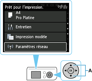 (A) pour sélectionner Paramètres réseau et appuyez sur le bouton OK.