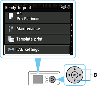 (B), da izberete Nastavitve LAN (LAN settings), in pritisnite gumb OK.