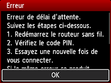 Cet écran apparaît si vous n'avez pas effectué la configuration WPS dans le temps imparti.