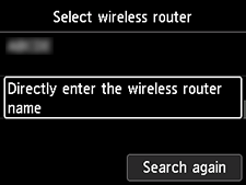 Izberite možnost Neposredno vnesite ime brezž. usmerjevalnika (Directly enter the wireless router name) in pritisnite gumb OK.