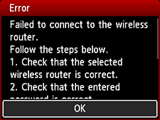 Če je brezžični usmerjevalnik nastavljen za komunikacijo samo prek standarda IEEE802.11n in je šifriranje nastavljeno na WEP ali TKIP, spremenite standard šifriranja na nekaj drugega kot WEP in TKIP ali spremenite komunikacijski standard, nato pa znova vnesite nastavitve brezžične povezave.