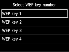 Kullanılacak WEP şifresi numarasını seçin ve OK düğmesine basın.