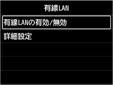 [有線LANの有効/無効]を選び、OKボタンを押します。