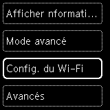 Appuyez sur le bouton OK de l'écran d'attente de copie, puis sélectionnez Paramètres réseau > Wi-Fi > Config. du Wi-Fi, et appuyez à nouveau sur le bouton OK.