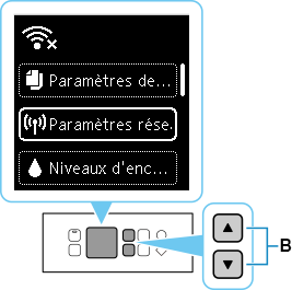 (B) pour sélectionner Paramètres réseau et appuyez sur le bouton OK.