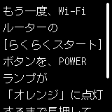 画面が切り替わったら、30秒以内にらくらくスタートボタンを再度長押しし、Wi-FiルーターのPOWERランプがオレンジに点灯したらはなします。