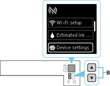 3. Kasutage nuppu Üles või Alla (B), et valida Seadme määrangud (Device settings), ja seejärel vajutage nuppu OK.
