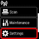 na tiskárně vyberte možnost Nastavení (Settings) a stiskněte tlačítko OK.