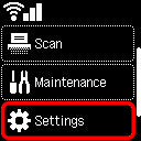 na tiskárně vyberte možnost Nastavení (Settings) a stiskněte tlačítko OK.