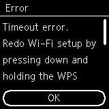 Η οθόνη αυτή εμφανίζεται στην περίπτωση που η ρύθμιση WPS δεν ολοκληρώθηκε εντός του καθορισμένου χρονικού διαστήματος.