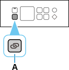 Aptuveni trīs sekundes turiet nospiestu pogu printeris Bezvadu savienojums (Wireless connect) (A).
