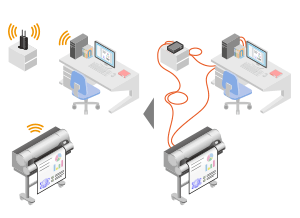 استخدام الطابعة من خلال أجهزة كمبيوتر متعددة أو أجهزة أخرى بدون إعادة توصيل الكبلات