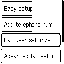 Jelölje ki az Faxfelhasználói beállítások (Fax user settings) elemet, majd nyomja meg az OK gombot.