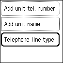 Jelölje ki az Telefonvonal típusa (Telephone line type) elemet, majd nyomja meg az OK gombot.