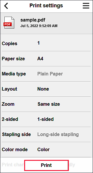 Poznámka- Pokud se Cloud nezobrazí, ujistěte se, že je nainstalována nejnovější verze firmwaru. Potom tiskárnu odstraňte a znovu zaregistrujte v Canon PRINT.
