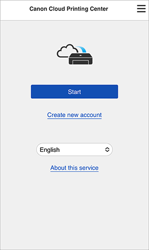 Tässä osiossa kuvataan Canon Cloud Printing Centerin aloitusnäyttö.
