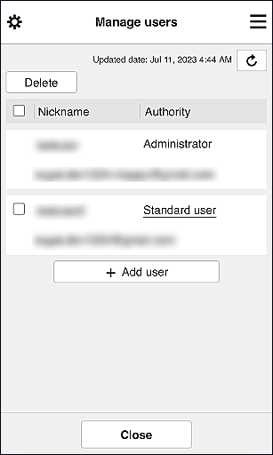 นอกจากนี้ หากคุณใช้เครื่องพิมพ์ MAXIFY series และได้เลือก โหมดหลายผู้ใช้(Multiuser mode) ใน หน้าจอ จัดการเครื่อง(Mng. printer) เฉพาะผู้ดูแลระบบเท่านั้นที่สามารถเพิ่ม ลบ และเรียงลำดับแอพ - หากคุณจัดการแอพที่ใช้งานได้ตามผู้ใช้ ผู้ใช้ทุกคนจะสามารถเพิ่ม ลบ และเรียงลำดับแอพได้ โดยไม่คำนึงถึงการตั้งค่า โหมดหลายผู้ใช้(Multiuser mode)